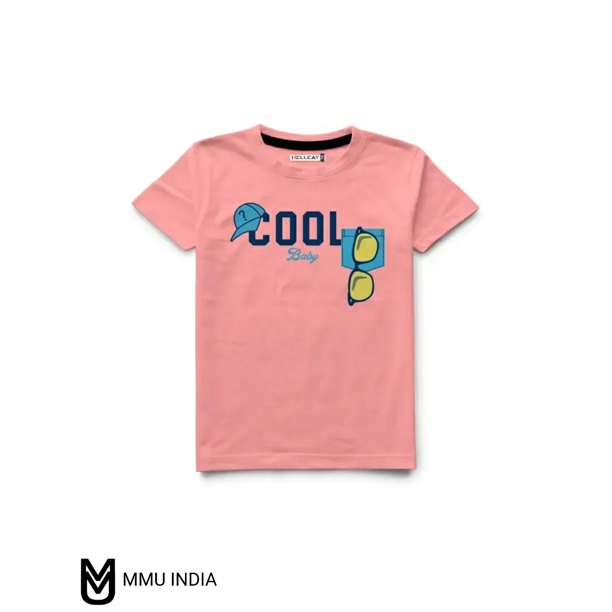 Stylish Pink Printed Half Sleeve T-shirt For Boys