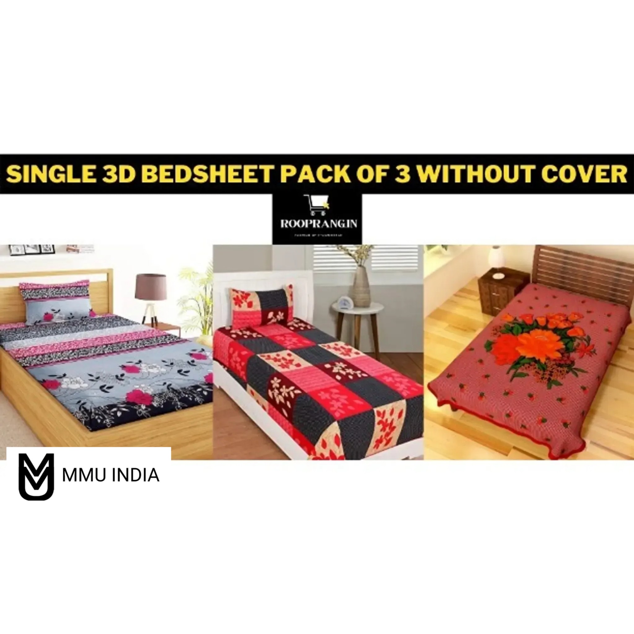 COTTON PRINTED 3D BEDSHEET PACK OF 3 WITHOUT PILLOW COVER