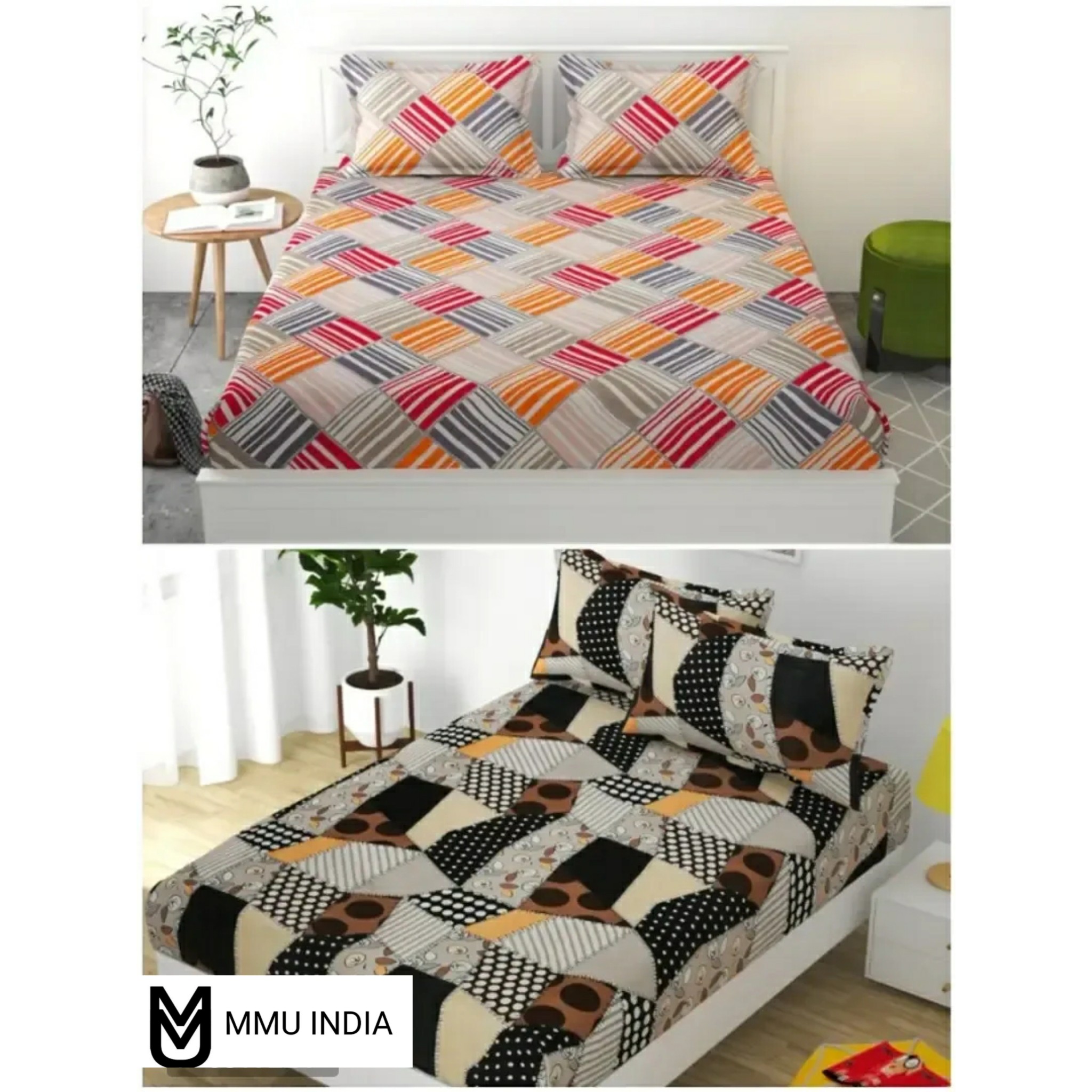 Fancy Glace Cotton Printed 2 Bedsheets with 4 Pillow Covers