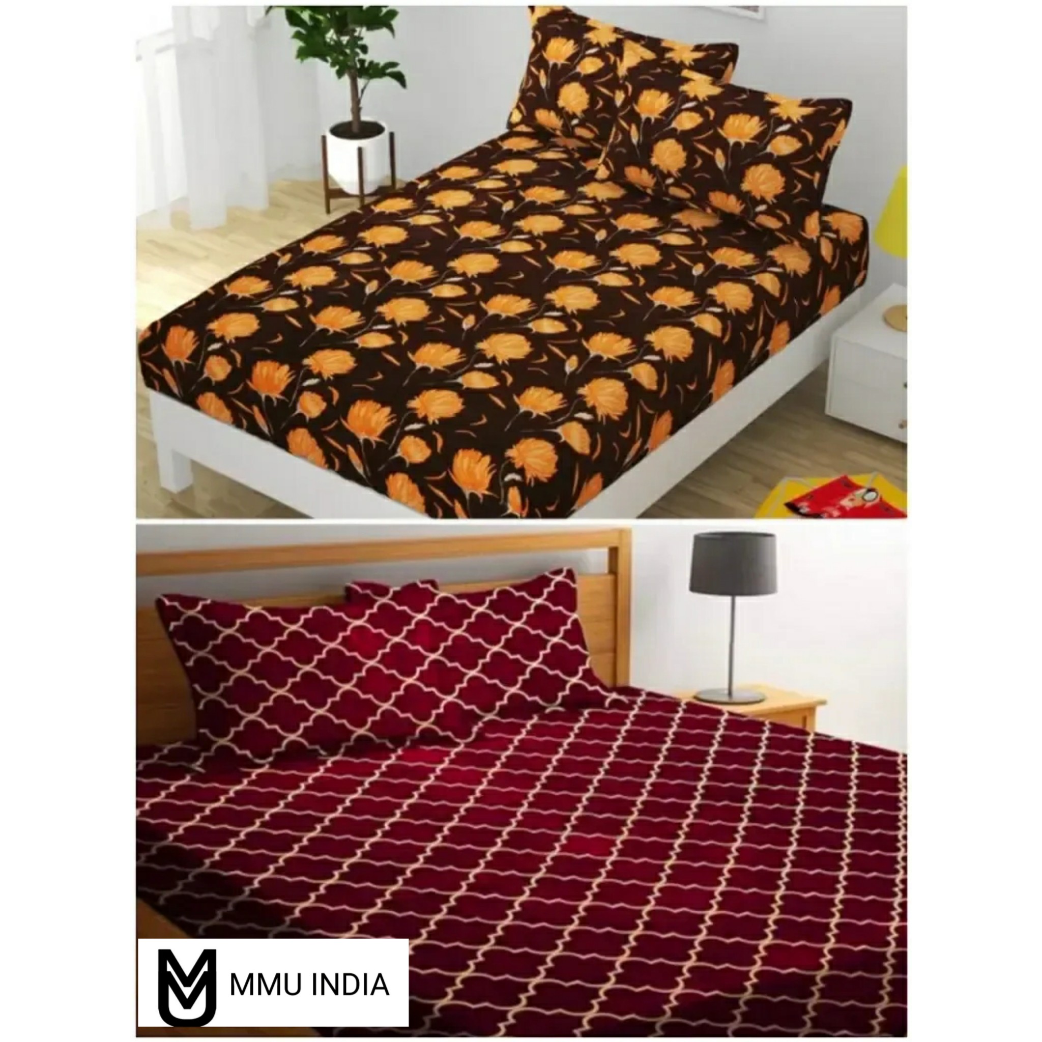 Classic Glace Cotton Printed Double Bedsheet with Pillow Covers, Pack of 2