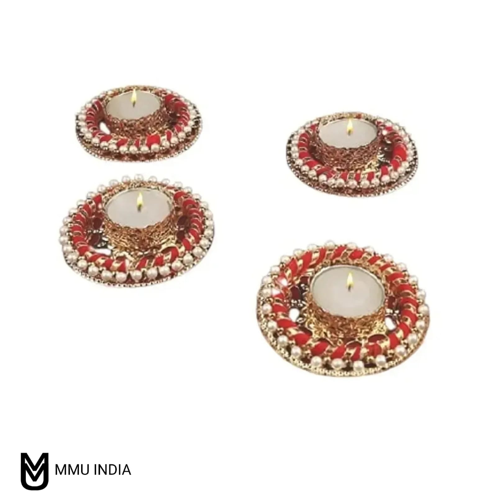 Beautiful Tea Light Candle Holder With Candle For Diwali, Home And Office Decoration, Birthday Celebration(Pack Of 4)