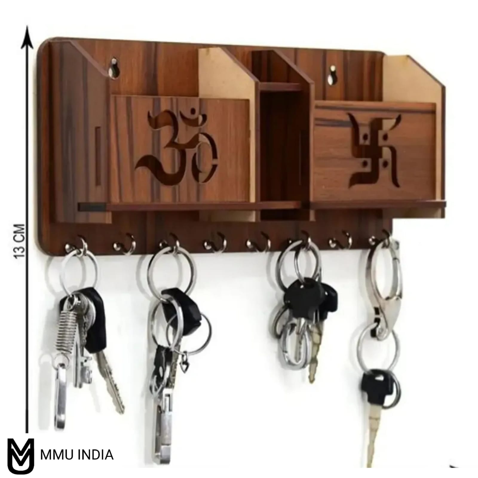 Designer Wooden Craft 2 Pocket Pen Stand 7 Hook Brown Wood Key Holder Wood Key Holder