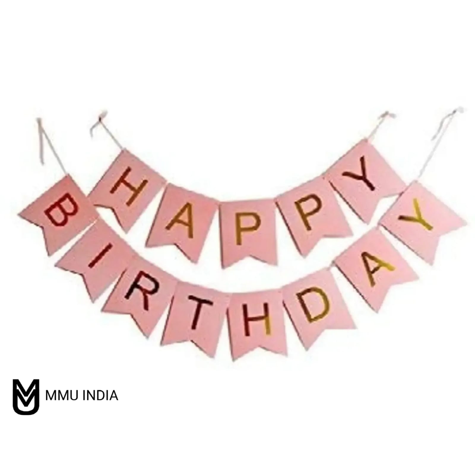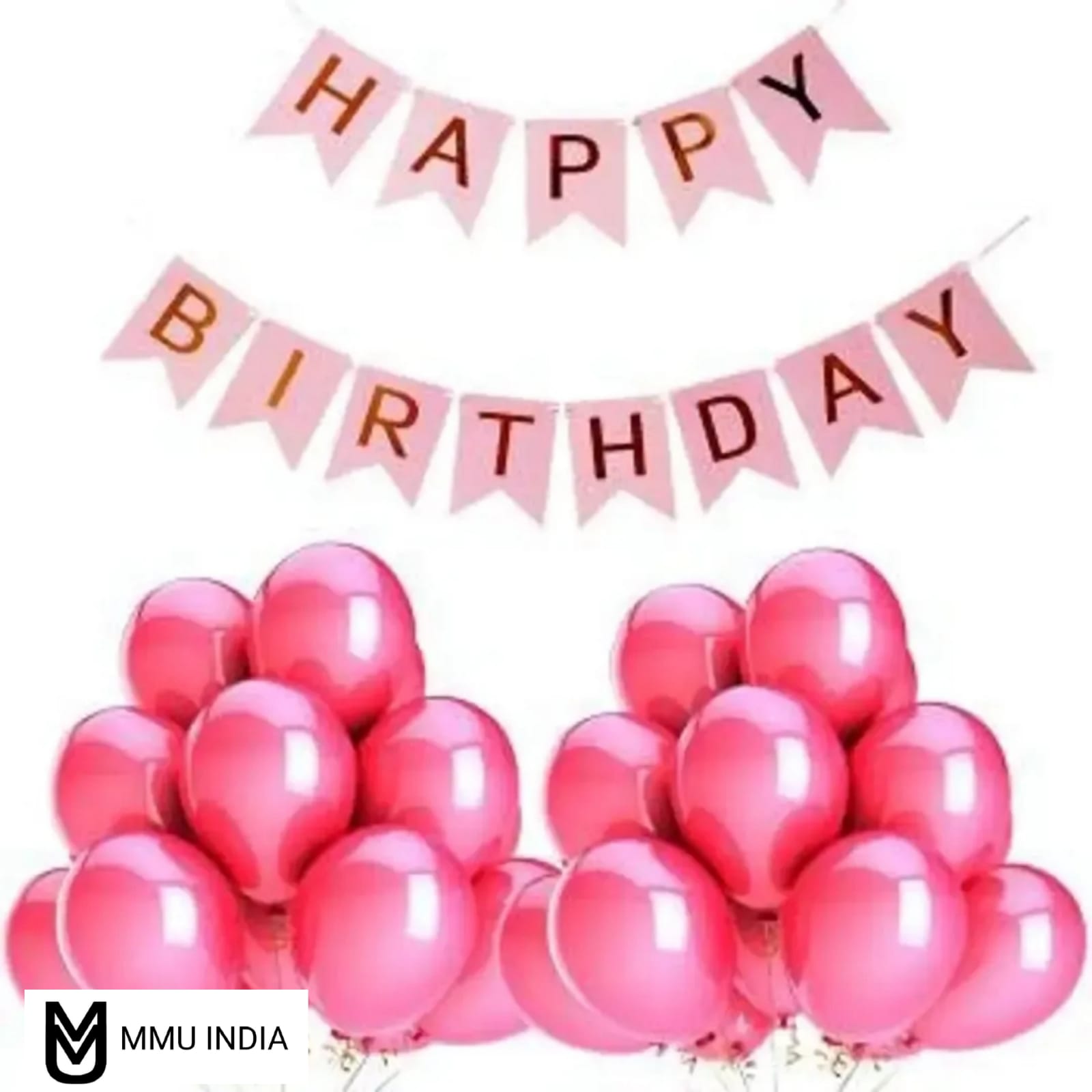 Happy Birthday Banner(Pink) and Balloons Combo For Birthday Party Decoration (1 Banner, 30 Metallic Pink Balloon)