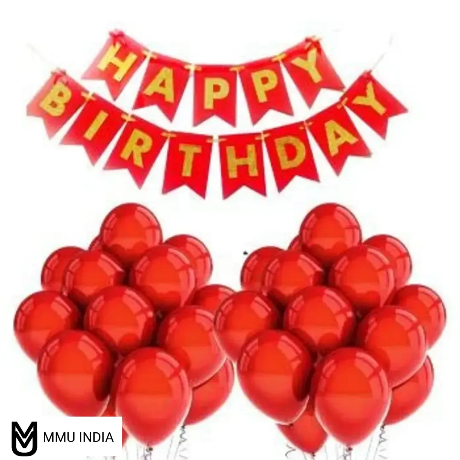 Happy Birthday Banner(Red) and Balloons Combo For Birthday Party Decoration (1 Banner, 30 Metallic Red Balloon)