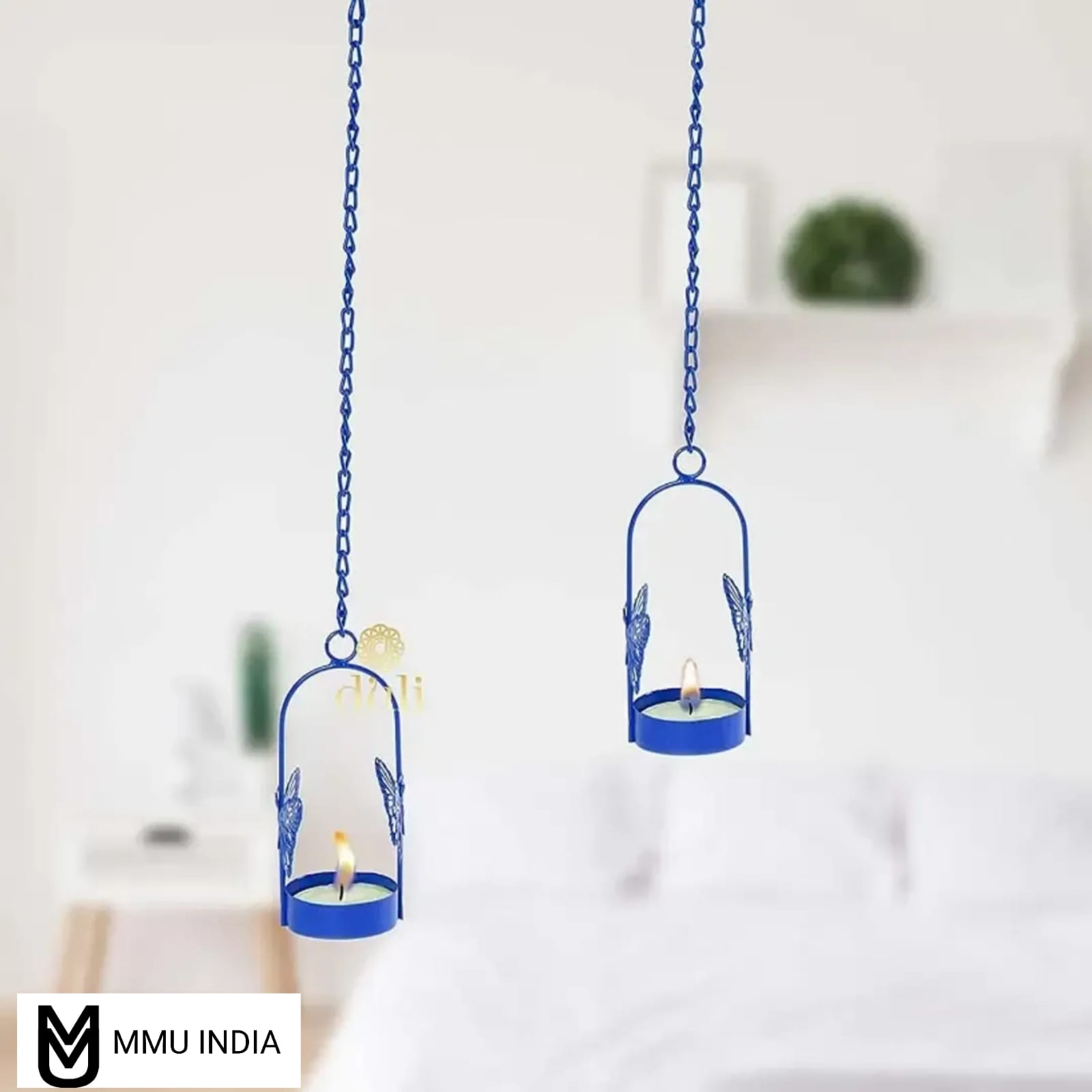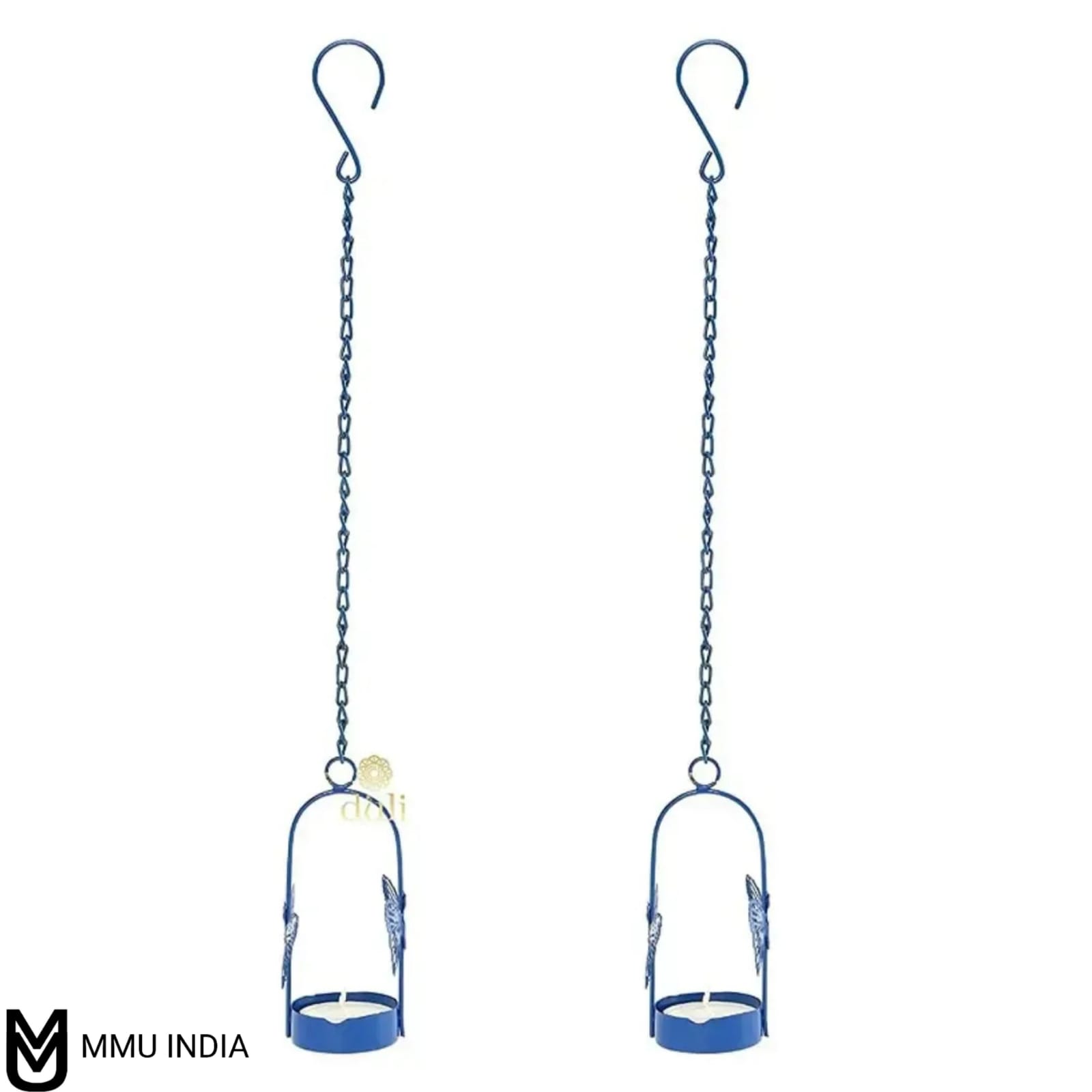 Hanging Blue Butterfly Tealight Holder for Home Deacute;cor, Diwali amp; Festive Decor (pack of 2)