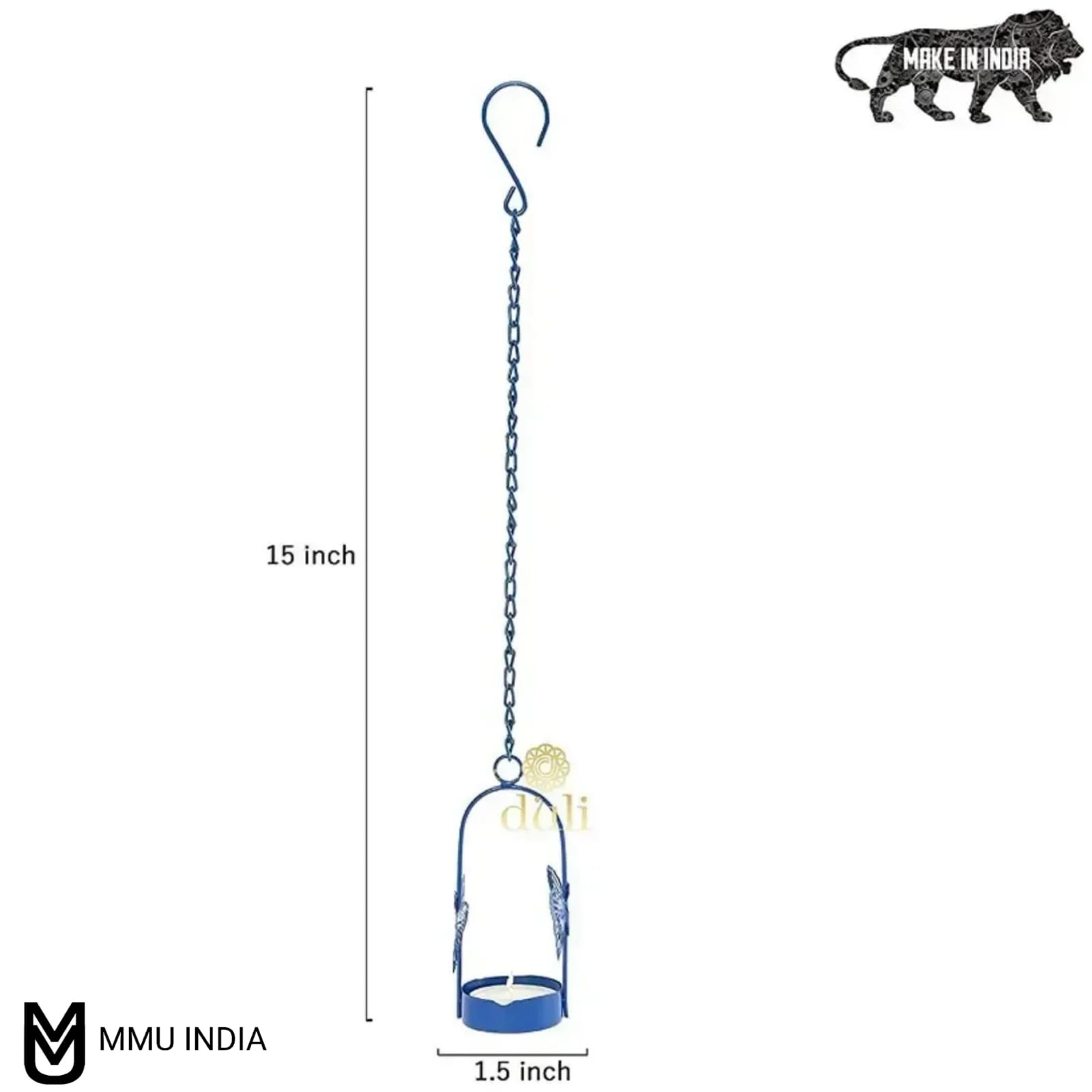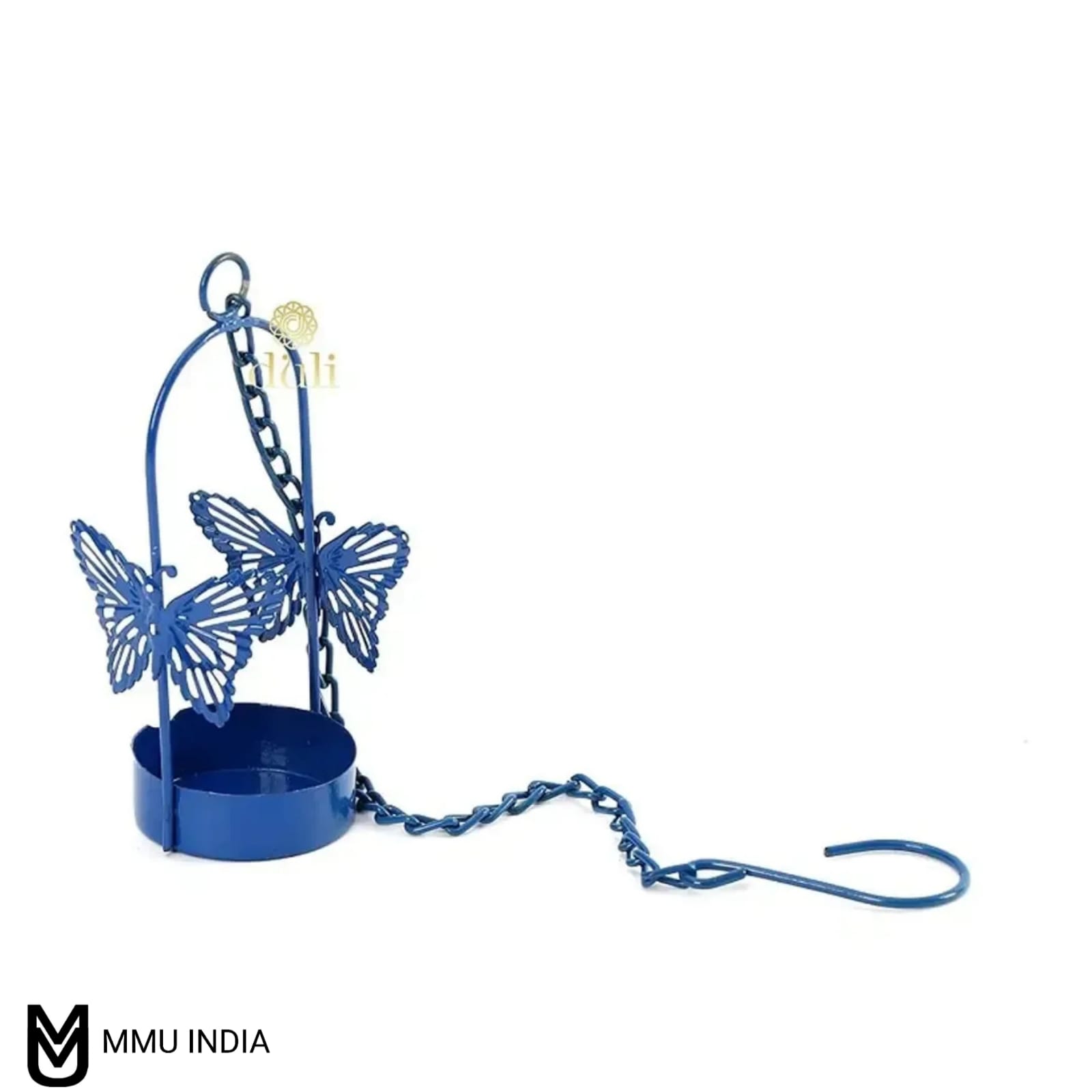 Hanging Blue Butterfly Tealight Holder for Home Deacute;cor, Diwali Festive Decor (pack of 2)