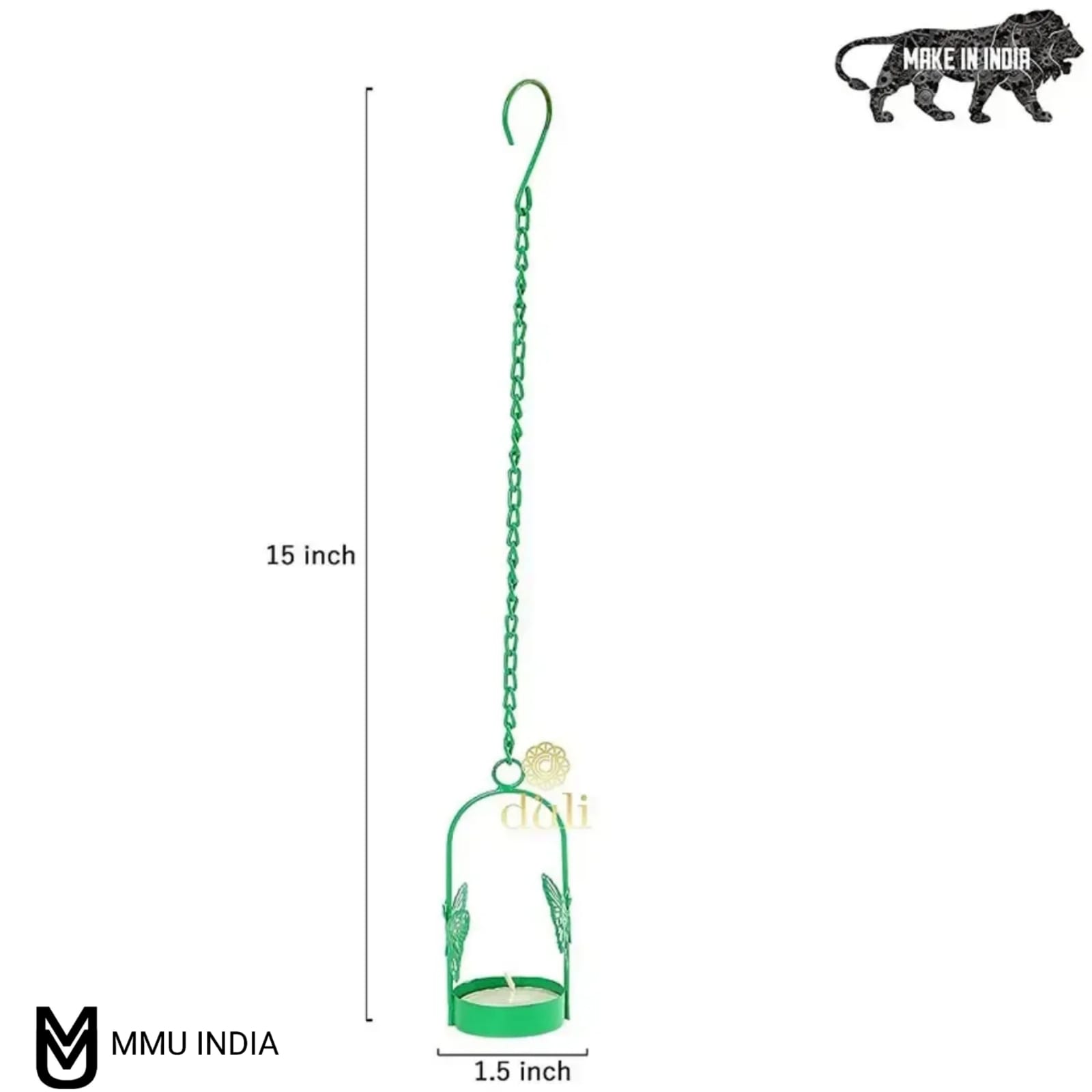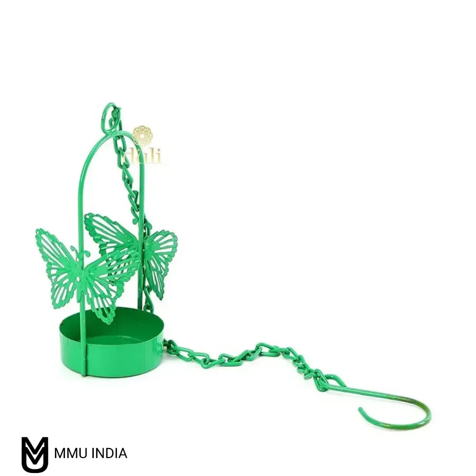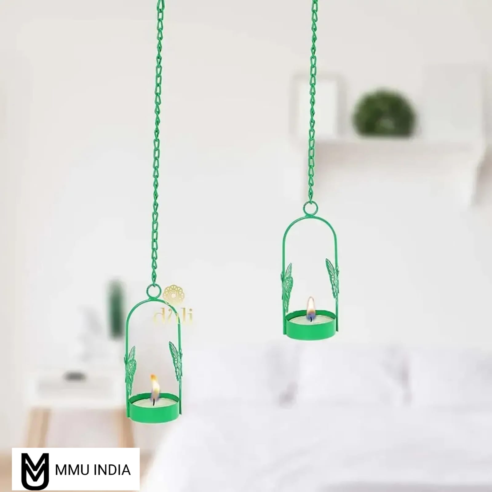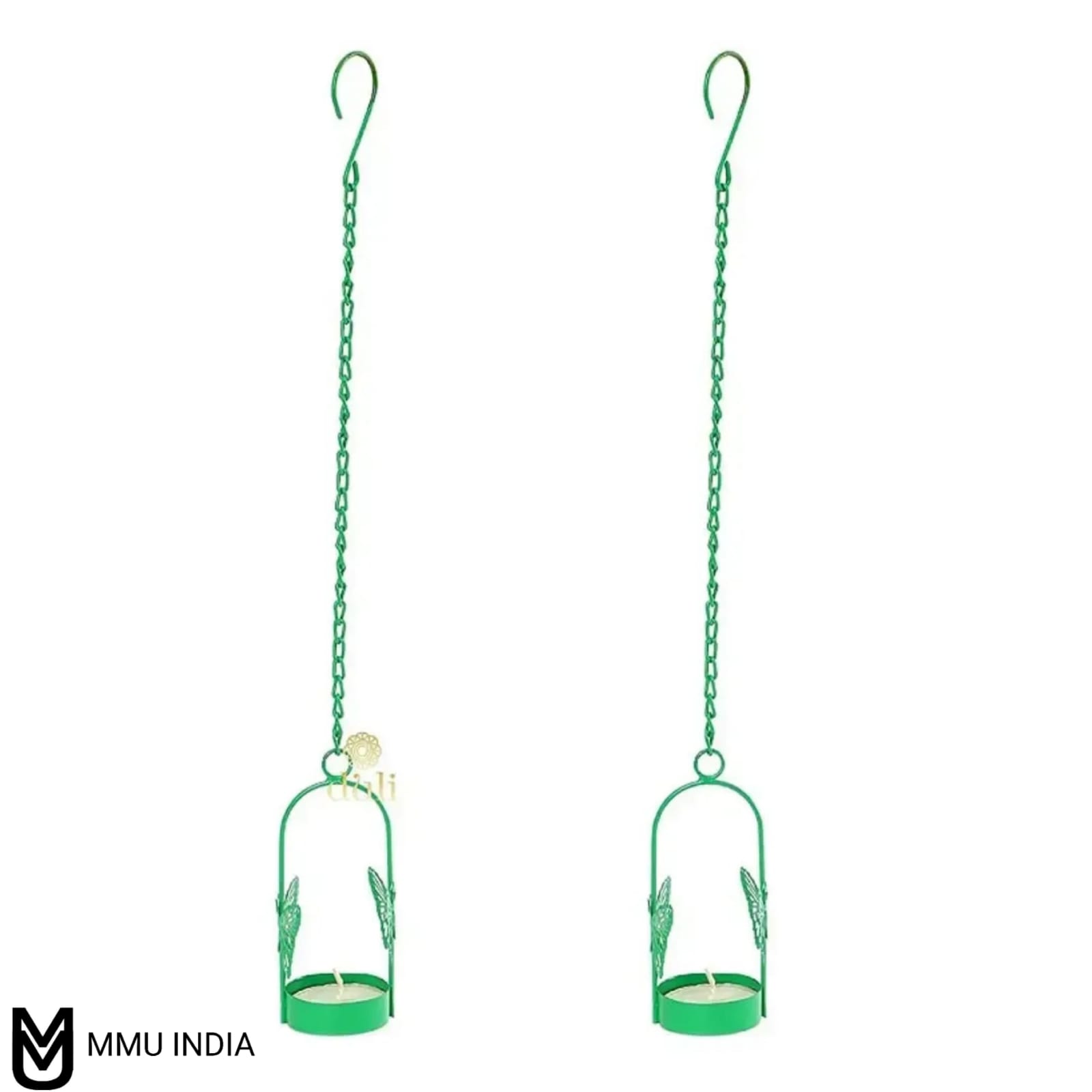 Hanging Green Butterfly Tealight Holder for Home Deacute;cor, Diwali amp; Festive Decor (pack of 2)