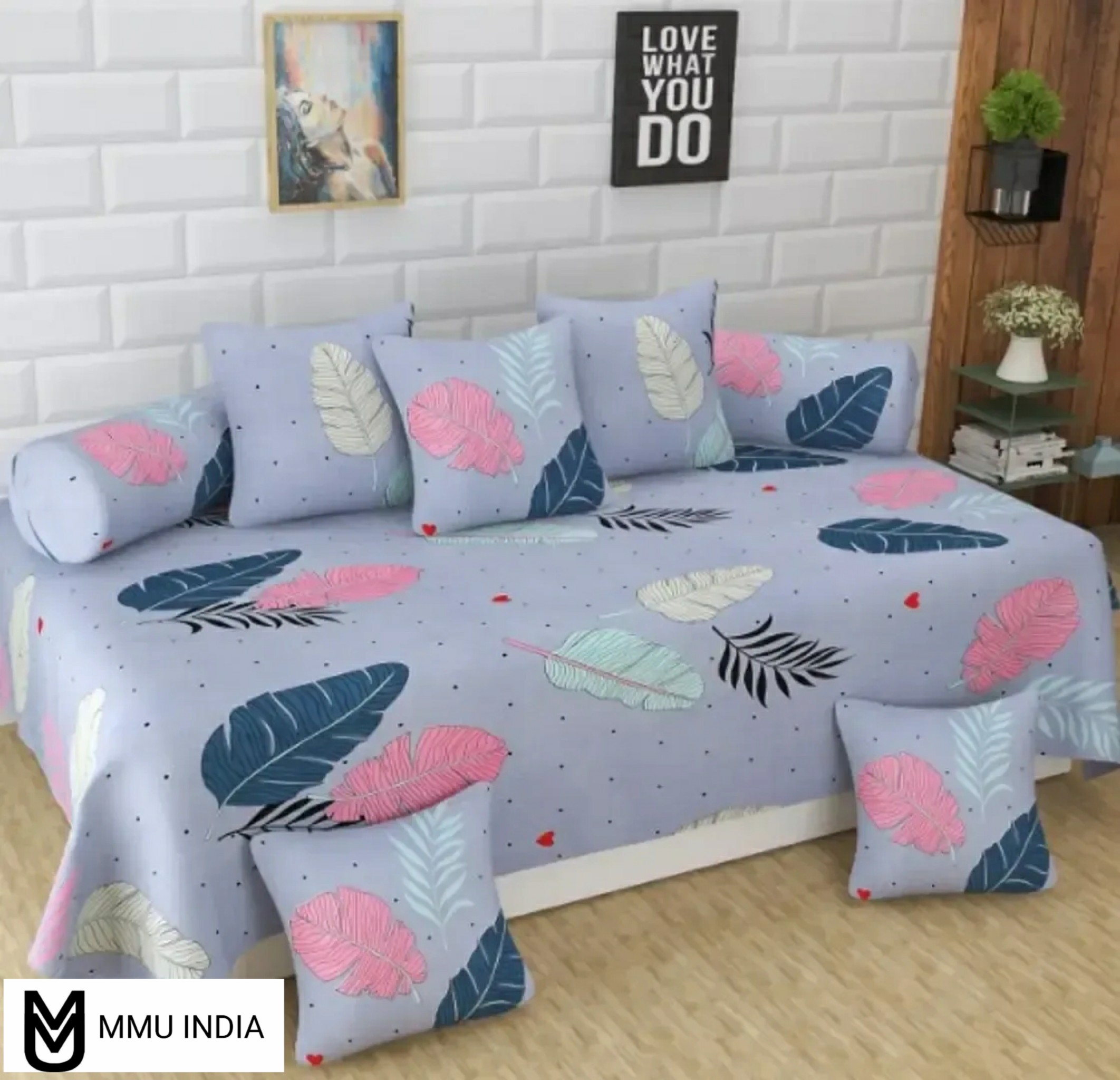 Classic Glace Cotton Printed Single Bed Diwan Sets, Pack of 8pcs