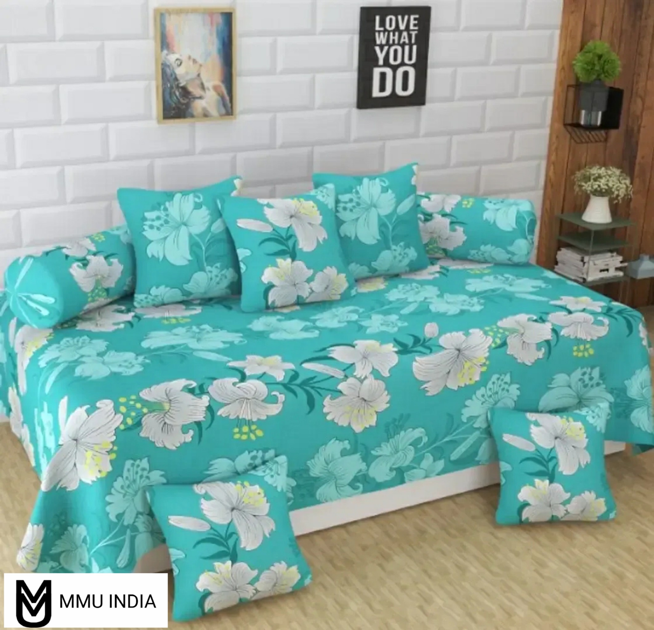 Classic Glace Cotton Printed Single Bed Diwan Sets, Pack of 8pcs