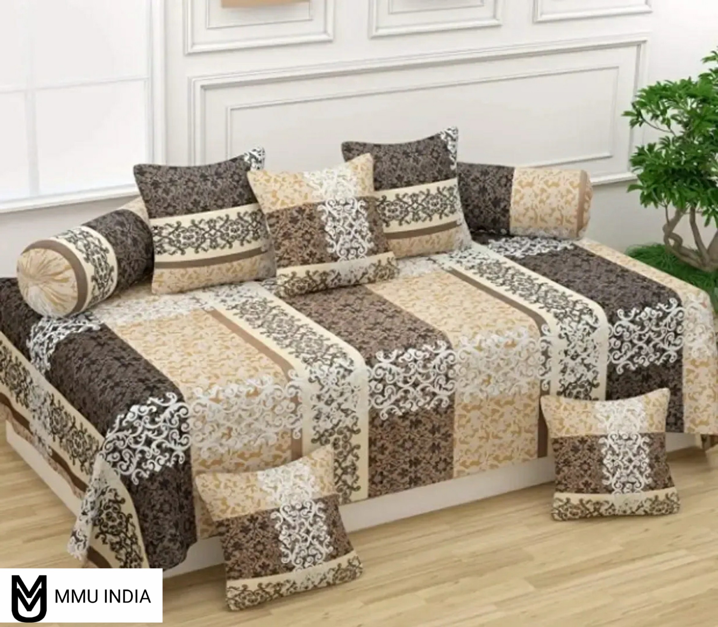 polycotton gold quality dewan set, pack contains 1 pcs bedsheet, 2 pcs bolster cover, 5 pcs cushion cover