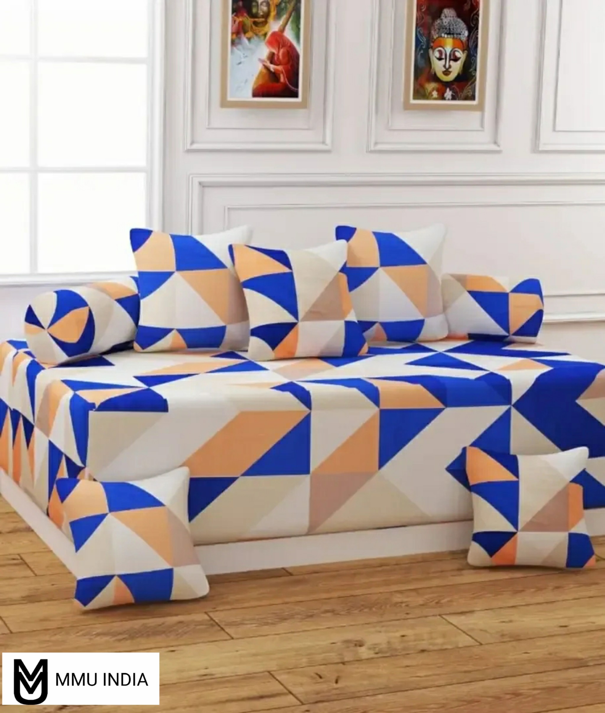 Diwan Set ( 8 piece set ) Material: Glace Cotton Net Contents :1 Single Bedsheet (60 X 90 ), 5 Cushion Covers( 16 X 16 inches), 2 Bolsters (16 X 32 Inches)