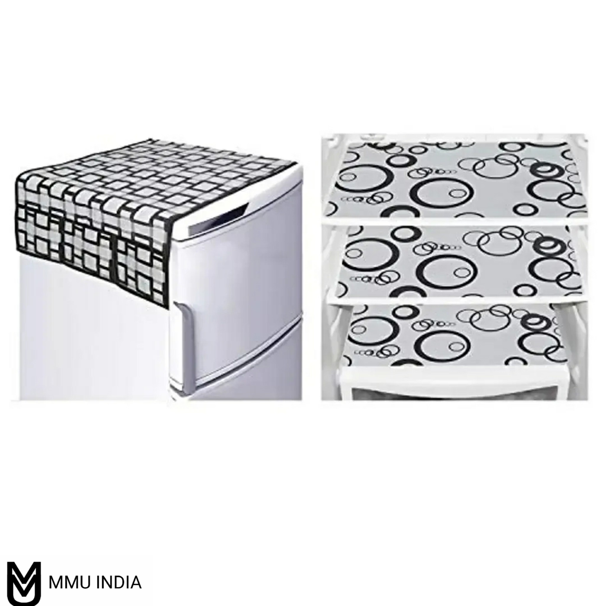 MONNKDECOR Combo of 1 Fridge Top and 3 Fridge Mats- Design-1
