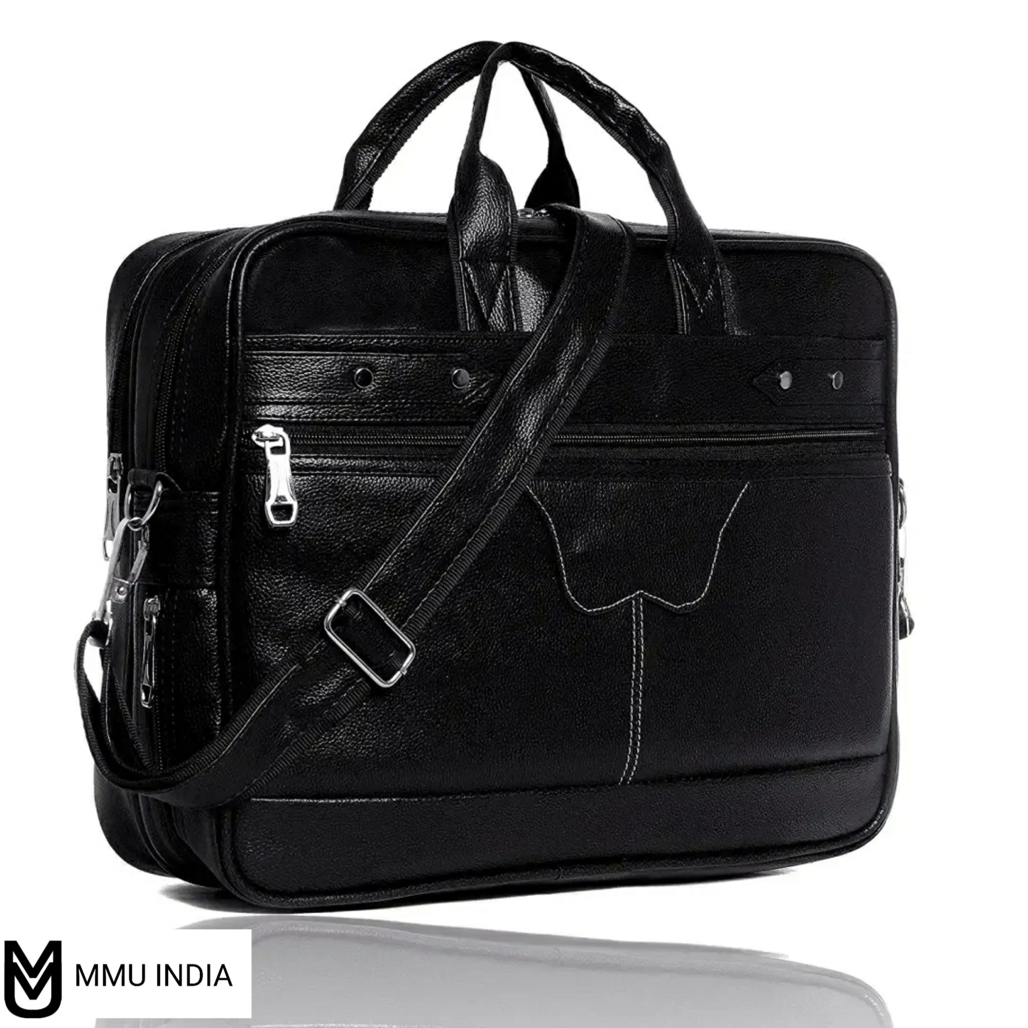 Trendy Men Black Synthetic Leather Briefcase Best Laptop Messenger Bag Satchel for Men
