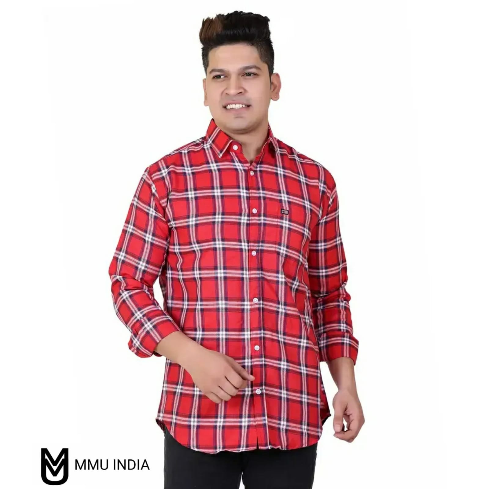 Stylish Cotton Red Checked Long Sleeves Casual Shirt For Men