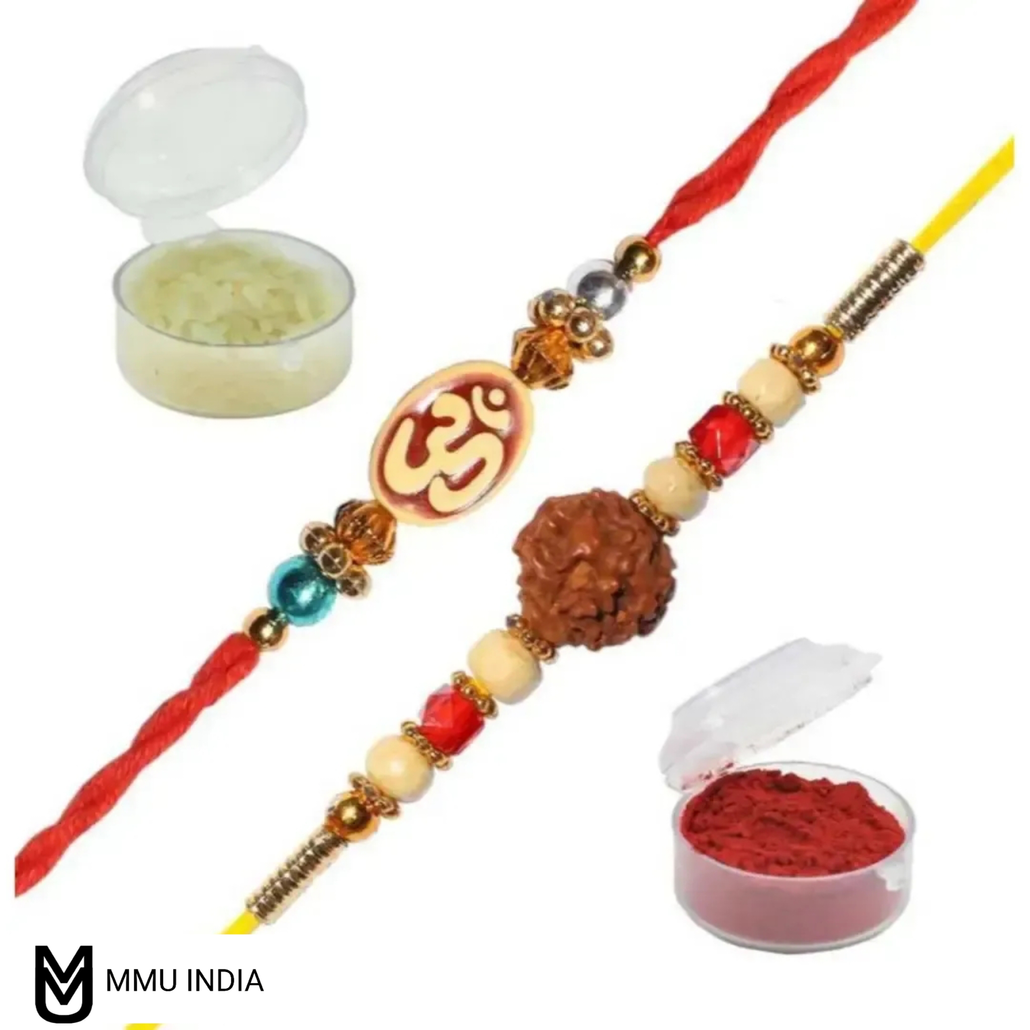Handmade Beautiful 2 Pieces Rakhi with Roli Chawal And Rakhi Card For Brother