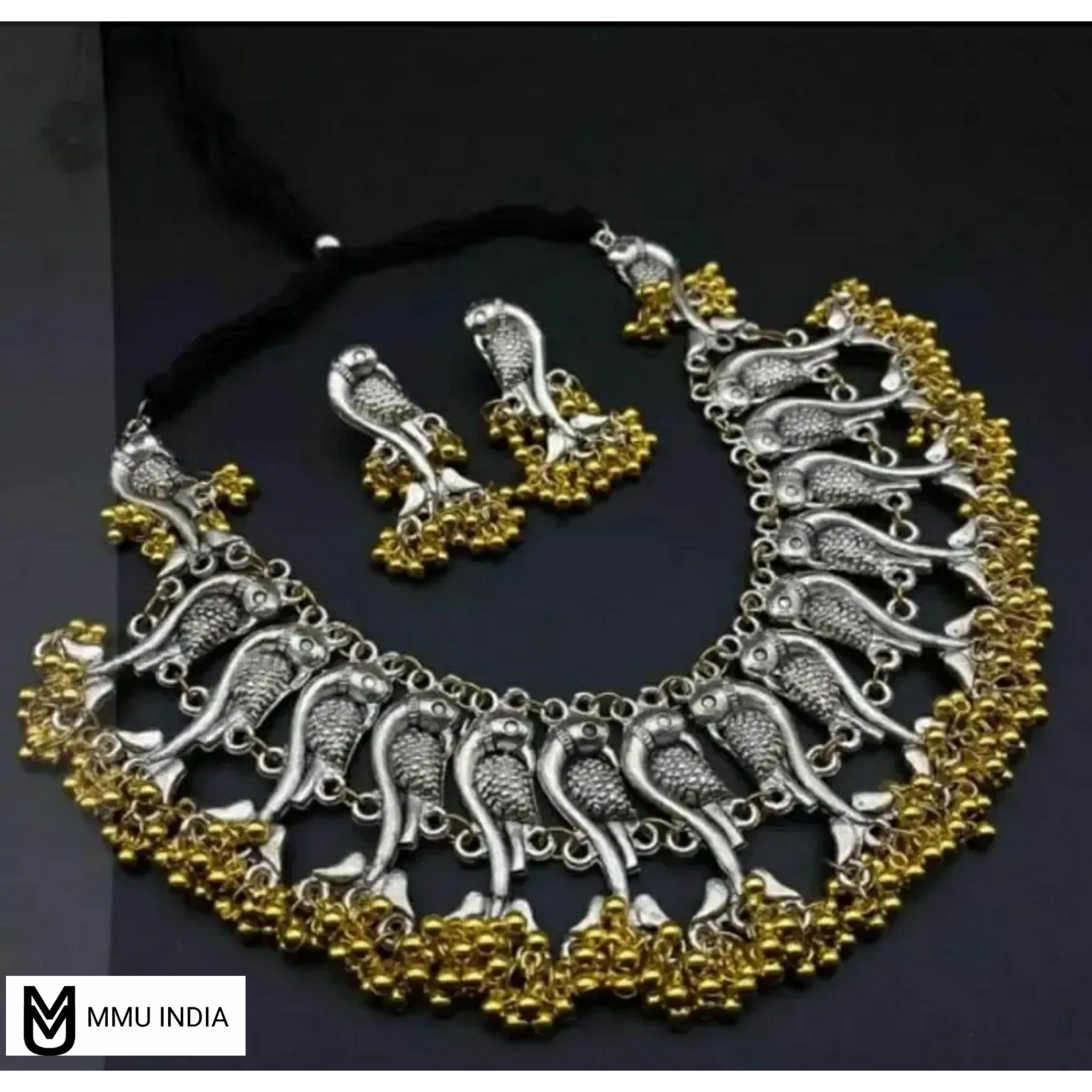 Latest Trendy Designer Oxidised Fish Necklace Set