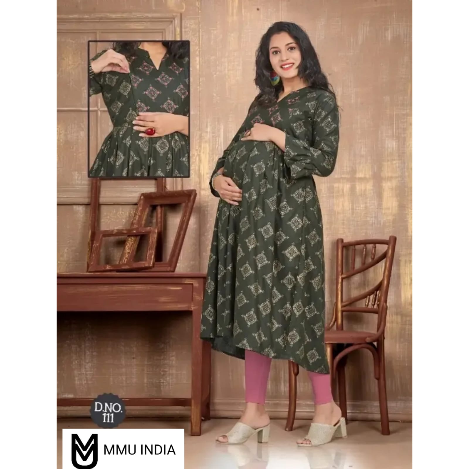 Pattern- Hand thread work on print with Zip Style- Maternity Wear Ideal for Pragnant women or New Mothe