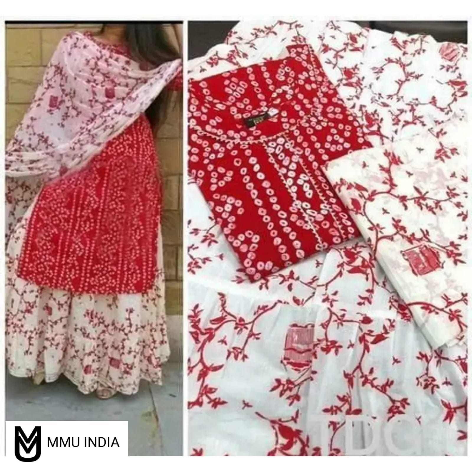 Womans Rayon Printed Kurti, Skirt with Dupatta