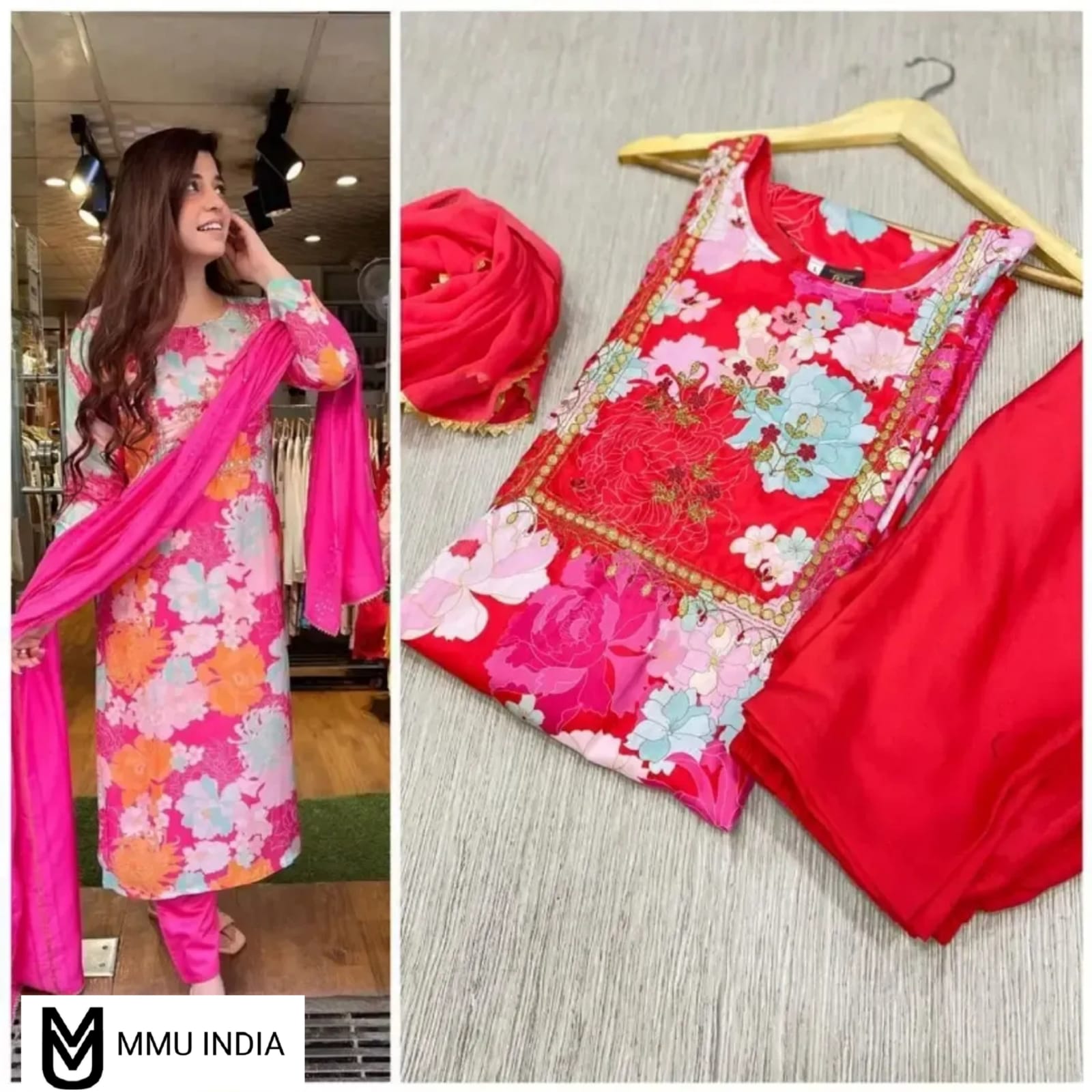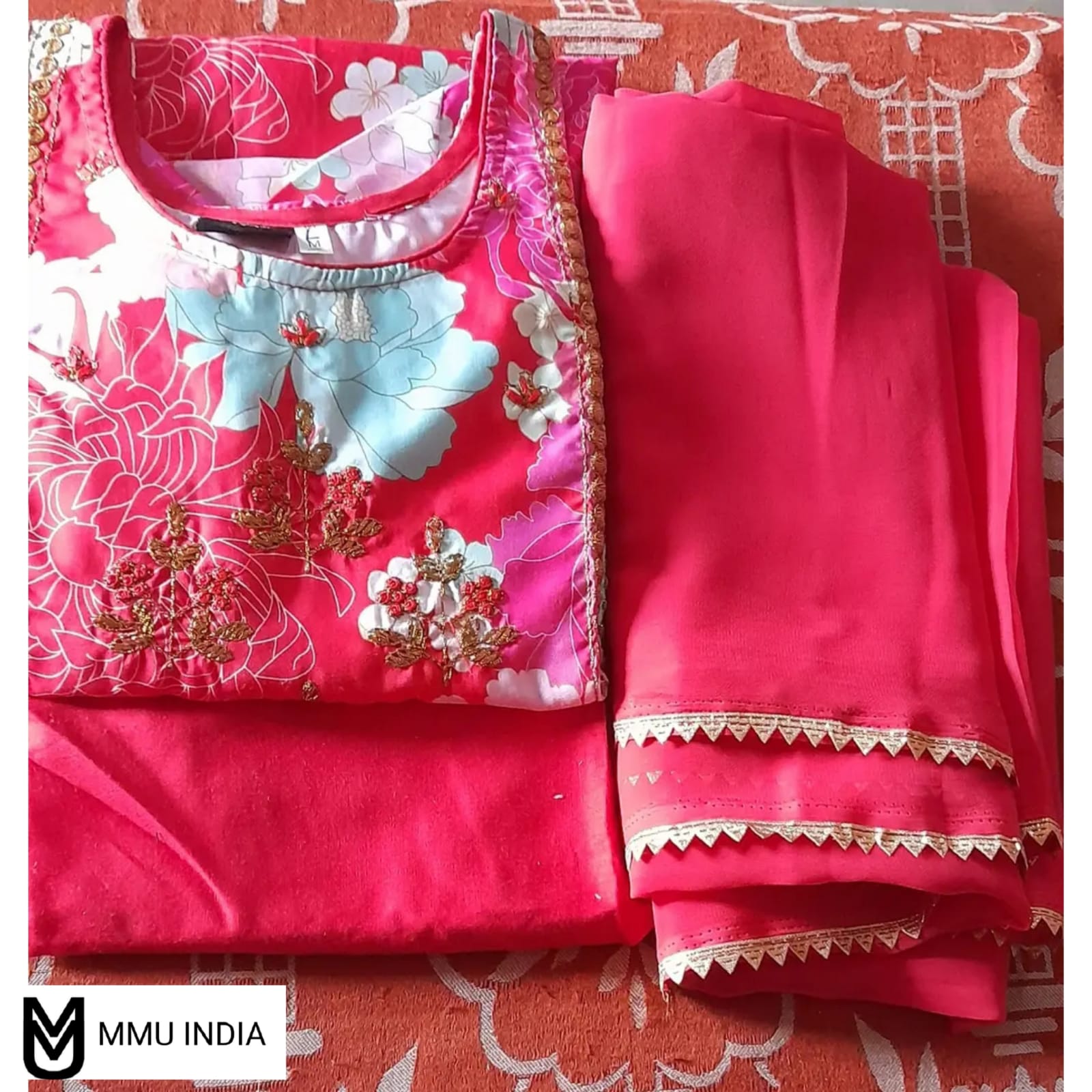 Women Rayon Embroidered Kurta with Bottom Dupatta