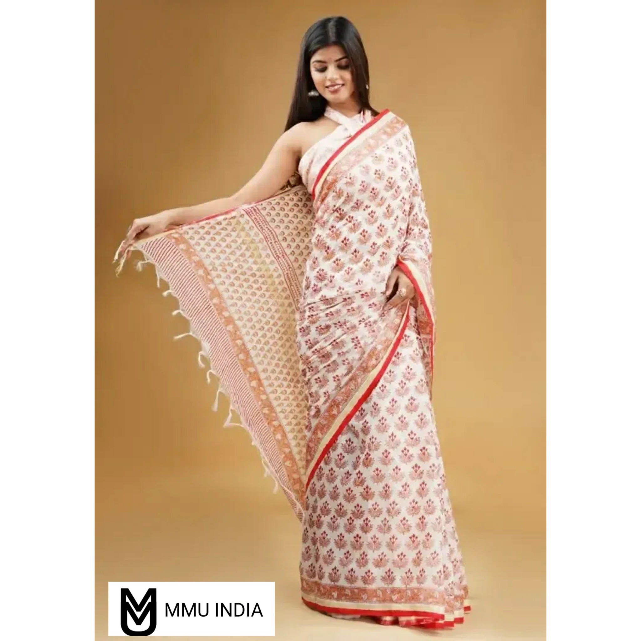 Chanderi Cotton Hand Block Printed Saree With Blouse Piece