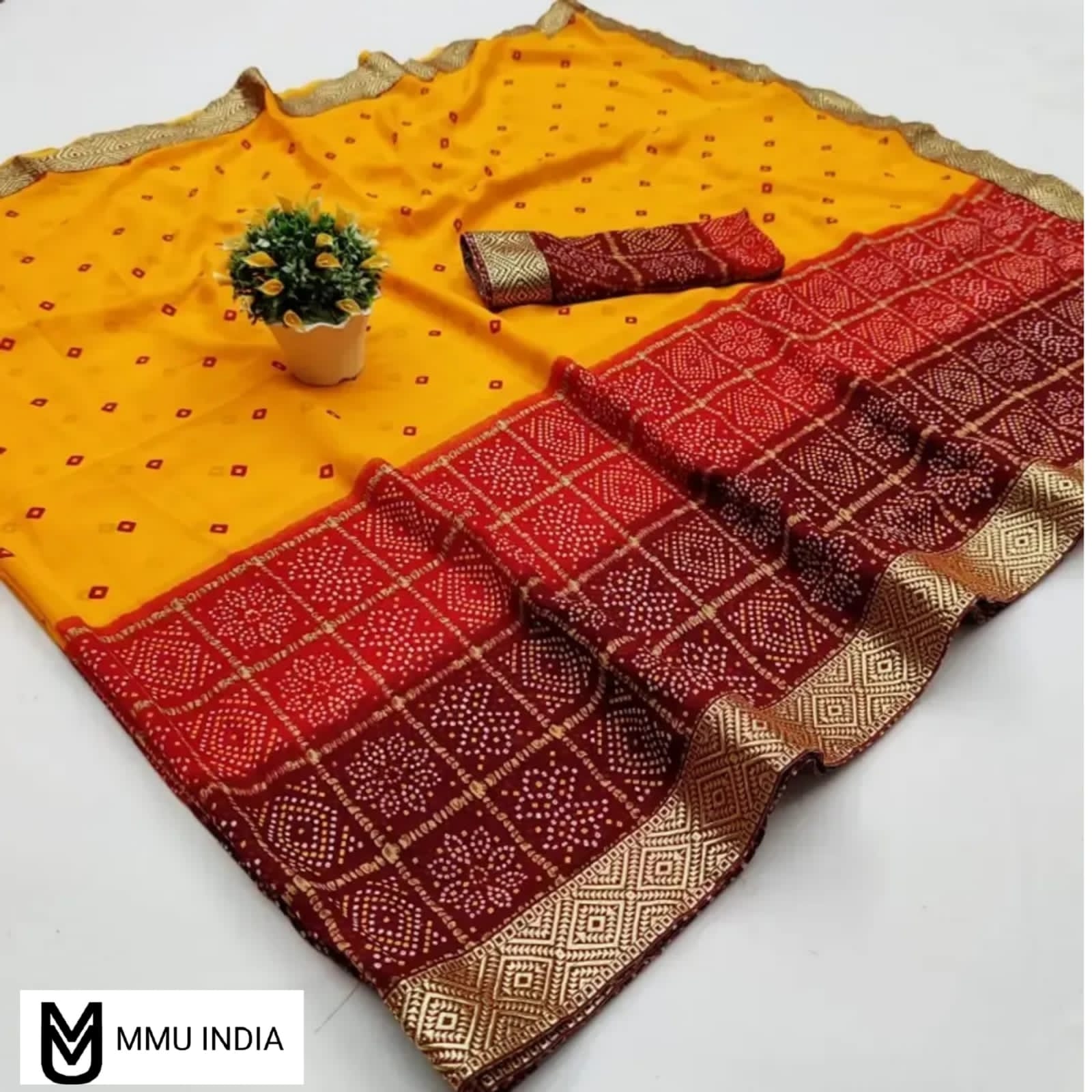 Attractive Georgette Printed Bandhani Lace Border Saree with Blouse piece