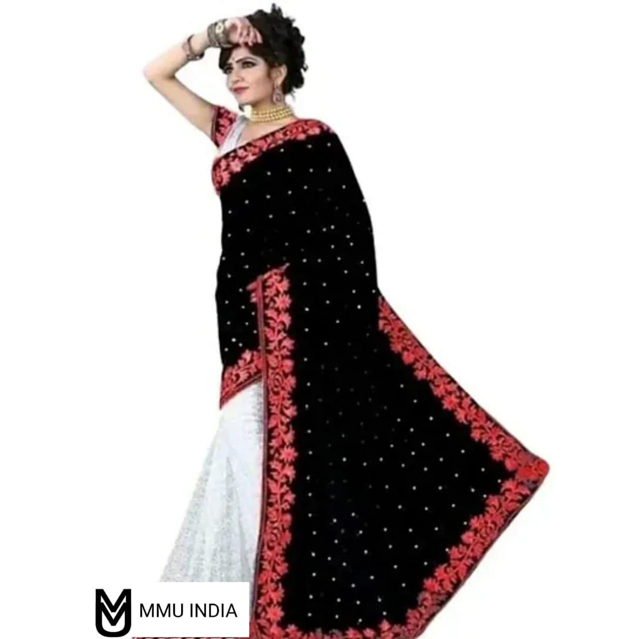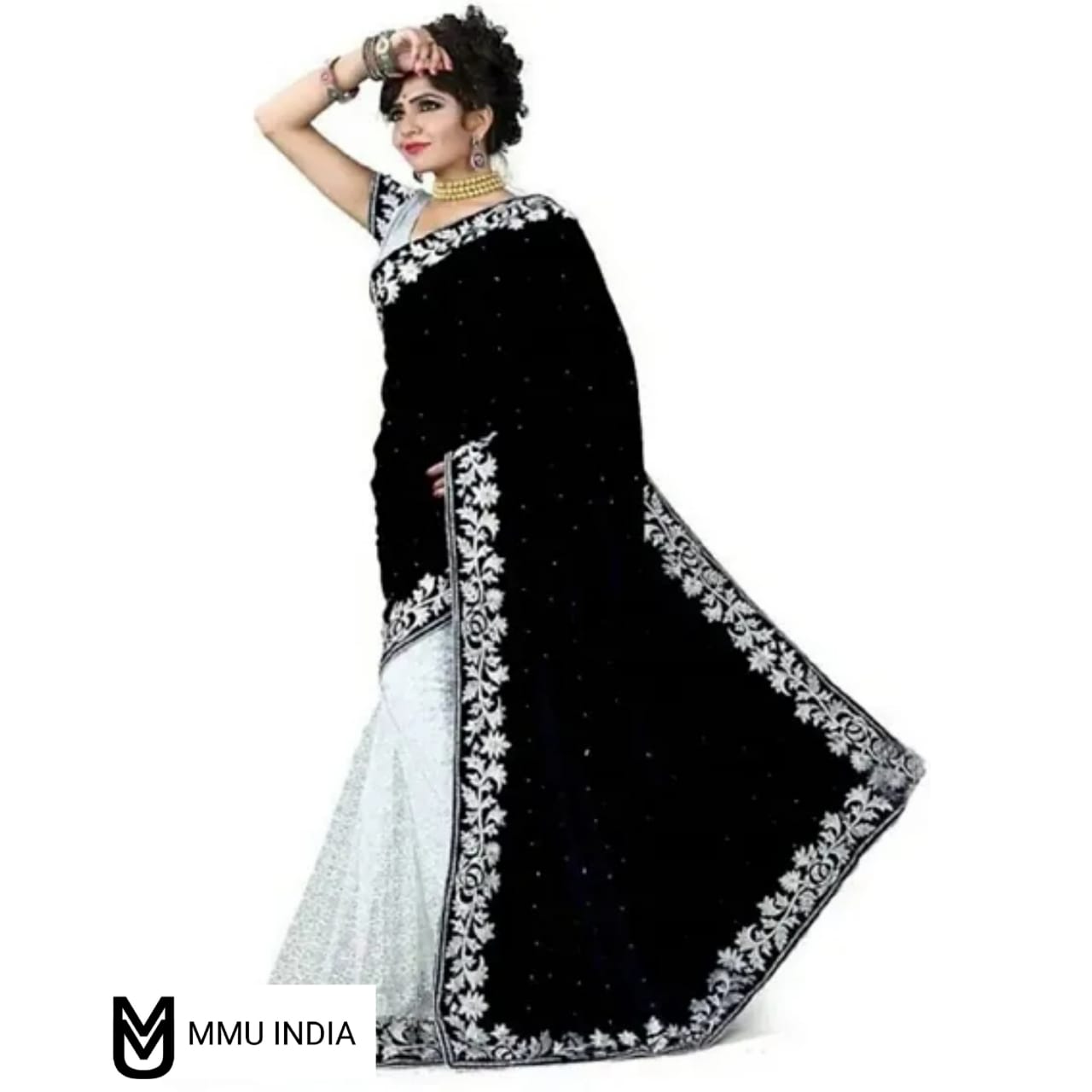 Be the first to review “Classic Velvet Embroidered Saree With Blouse piece For Women”