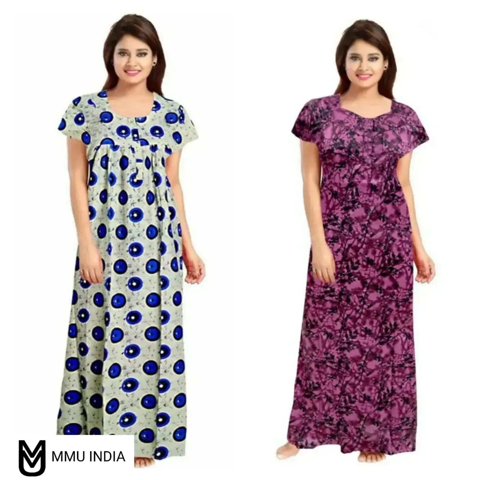 Pack Of 2 Women Cotton Printed Nightie/Night Gowns