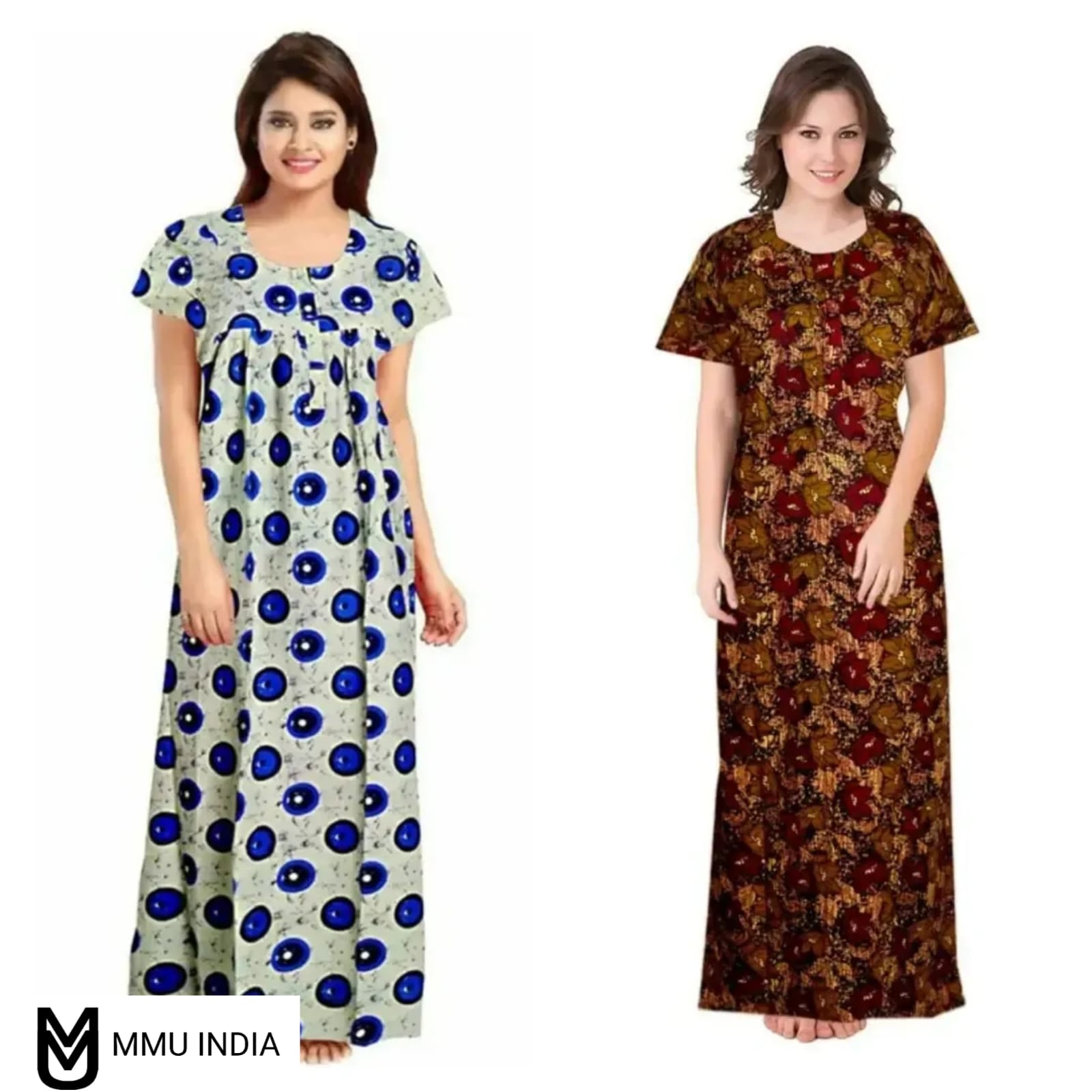 Pack Of 2 Women Cotton Printed Nighties/Night Gowns