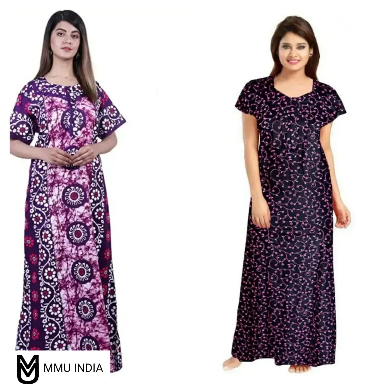Pack Of 2 Women Cotton Printed Nighties/Night Gowns