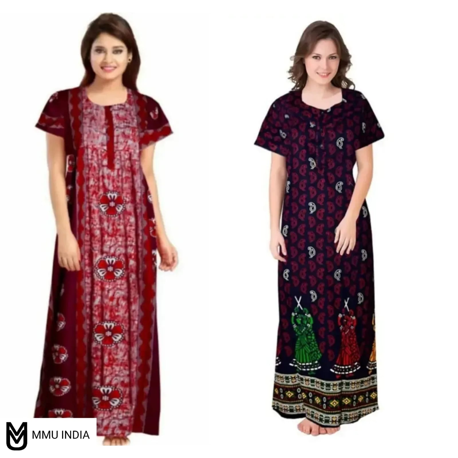 Pack Of 2 Women Cotton Printed Nigties/Night Gowns