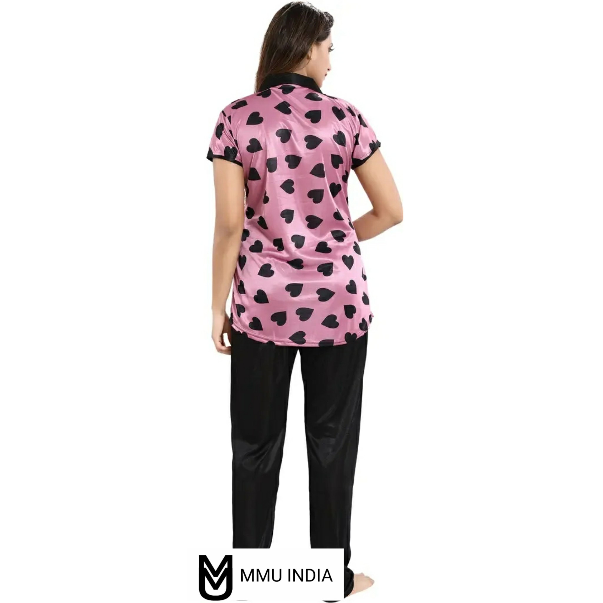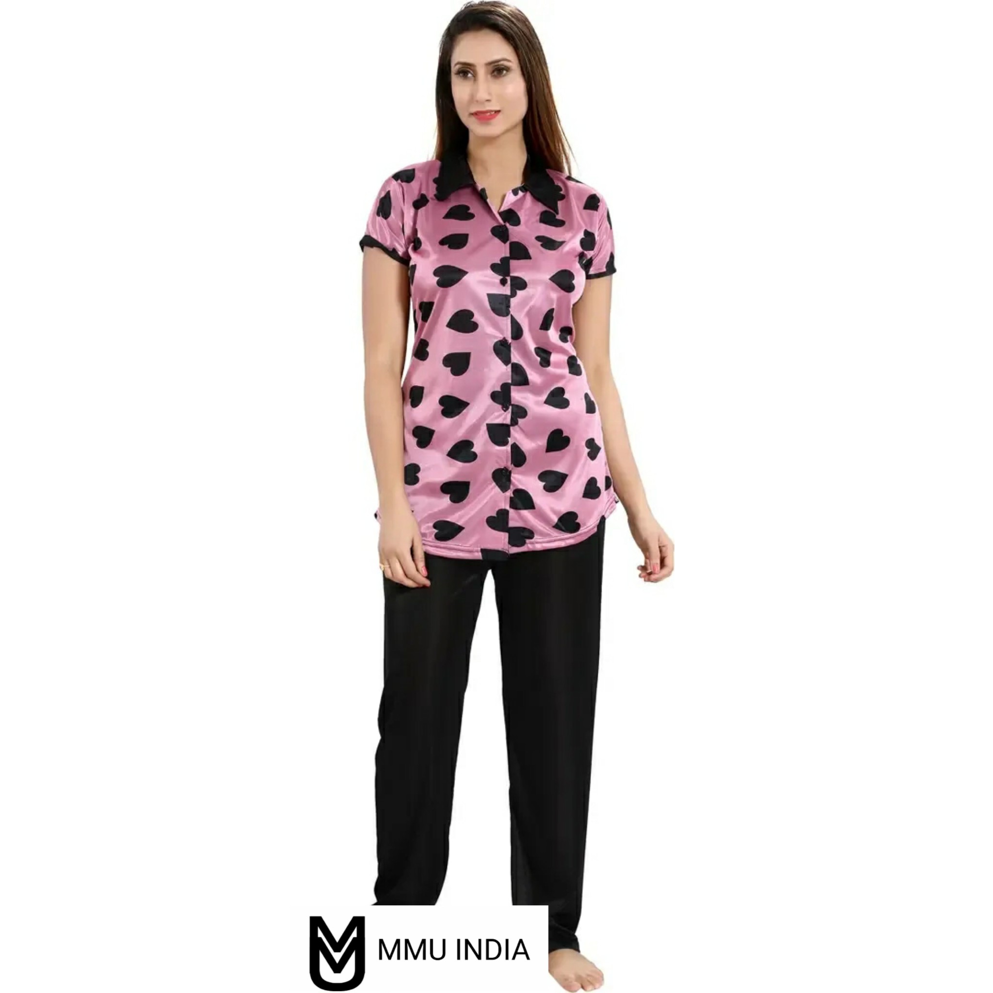 Classy Satin Printed Shirt and Pyjama Set For Women