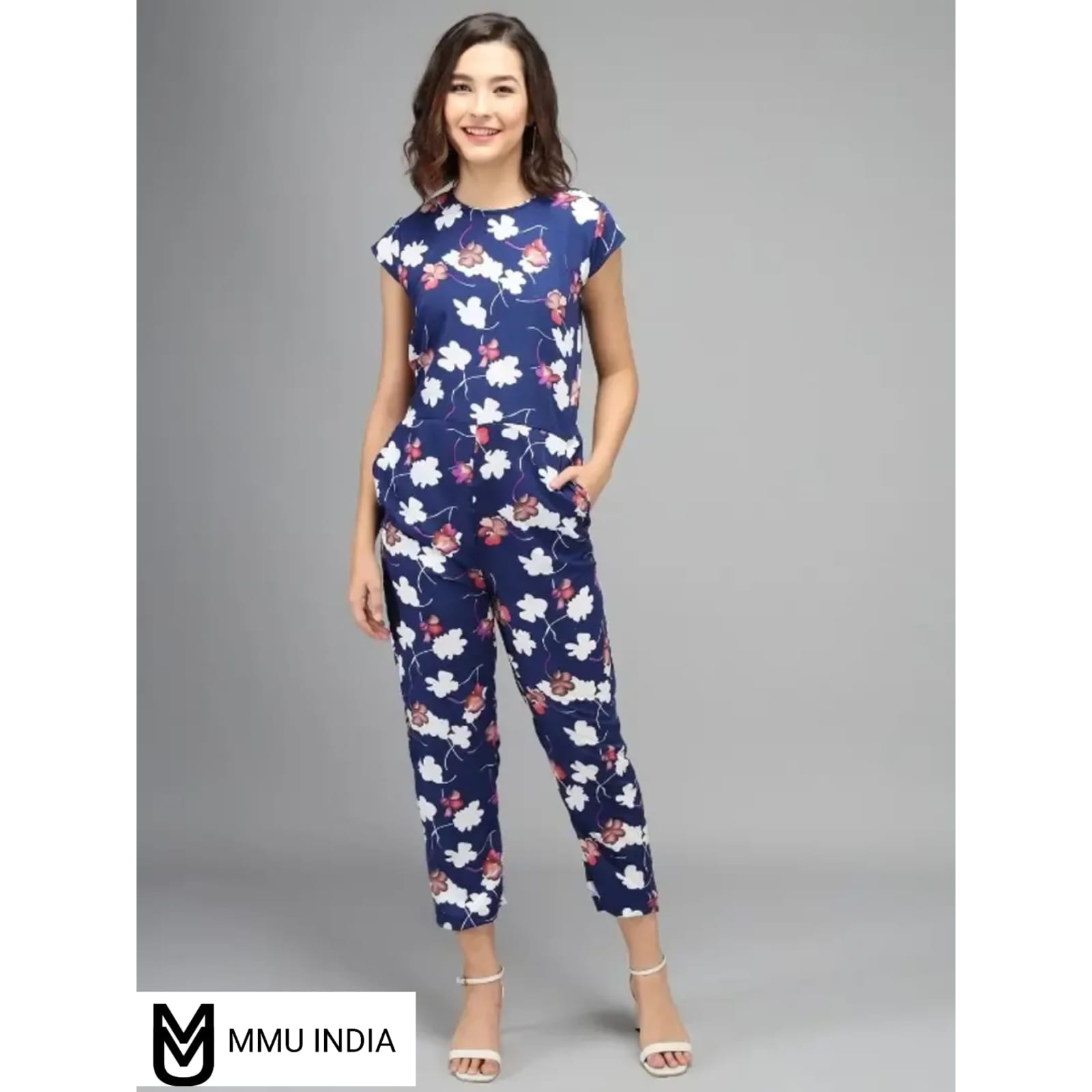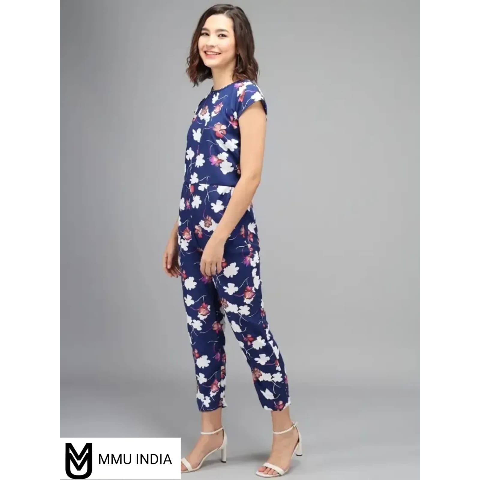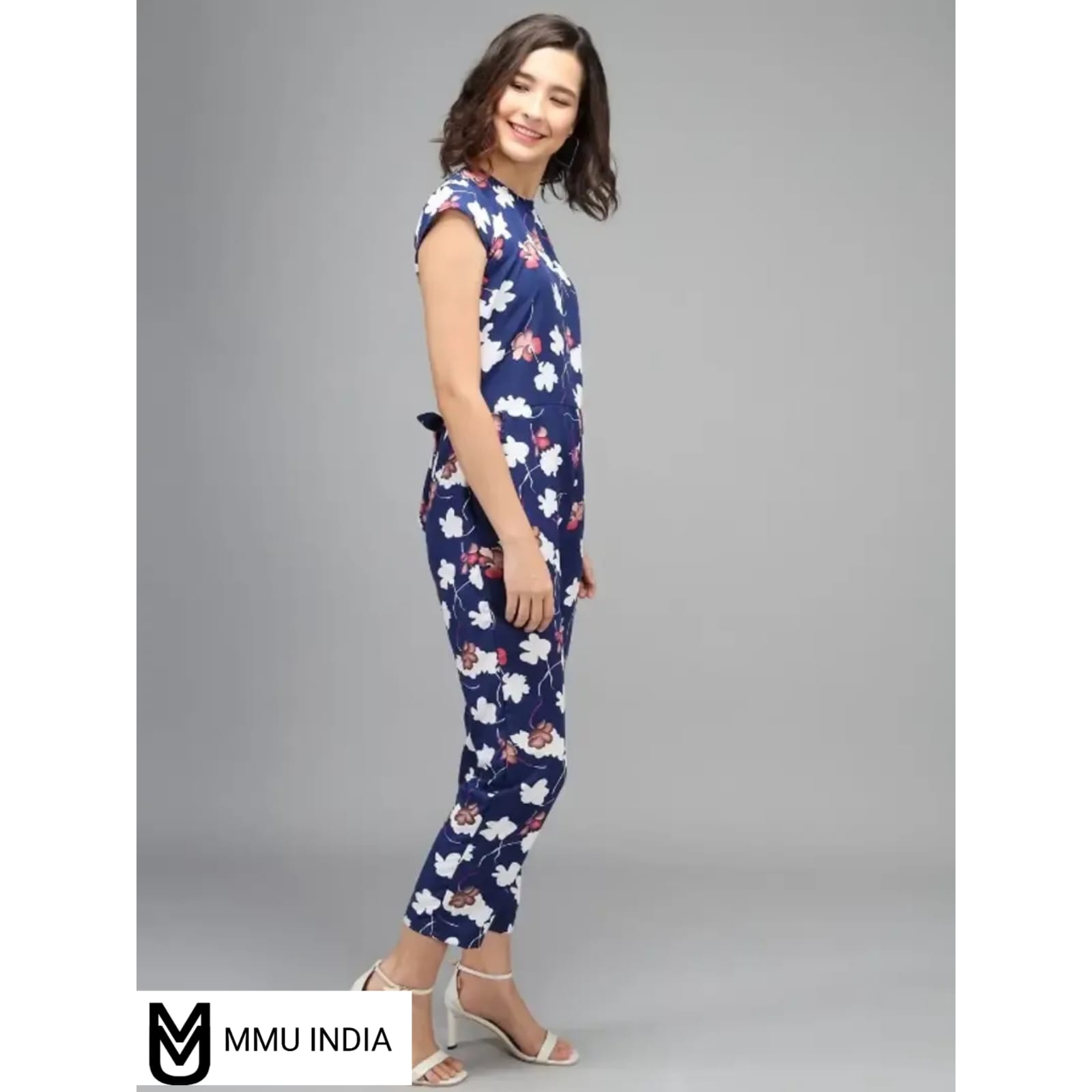 Vivient Women Nevy Color White Flower Printed Jumpsuit